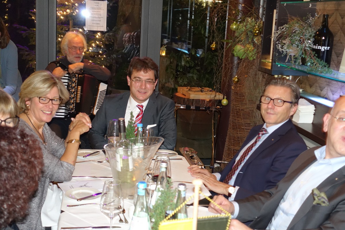 Am 09. Dezember 2017 fand die Weihnachstfeier des LIONS Clubs Müchen Solln im festlich geschmückten Wintergarten unseres Clublokals “Zum Sollner Hirschen“ statt. Während eines kleinen Stehempfamgs zu Beginn kamen sich die Mitglieder und mehrere Gäste in ersten Gesprächen näher. Zu Beginn des Dinners begrüßte unser Präsident, Dr. Armin Schirmer, die Anwesenden und hob in seiner Ansprache einige besondere Highlights des abgelaufenen Clubjahres hervor wobei er hierfür den jeweiligen Organisatoren für ihre Arbeit dankte. Als Konstante bei unseren Weihnachtsfeiern las LF Eugen Muchowski eine Weihnachtsgeschichte für die Gäste. Er entschied sich für die Geschichte „Das Paket des lieben Gottes“ von Berthold Brecht. Musikalische Einlagen begleiteten den Vortrag der Geschichte. Musik und gute Unterhaltungen sorgten für ein stimmungsvolles vorweihnachtliches Beisammensein. |