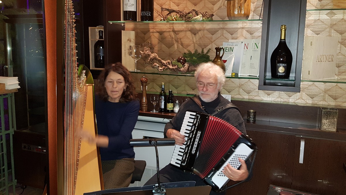 musikalische Umrahmung mit volkstümlichen Harfen- und Akkordeonklängen durch